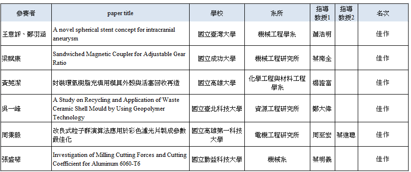 第一屆『2015旭泰科技論文獎』-碩士組得獎名單