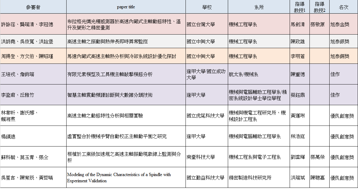 2016/10/01 第二屆『2016旭泰科技論文獎』-主軸創新應用得獎名單